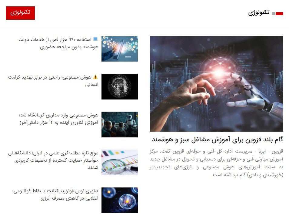 - تکنولوژی: آخرین دستاوردها و تحولات در دنیای فناوری. برای آگاهی از جدیدترین اخبار این حوزه، به بخش تکنولوژی مراجعه نمایید.